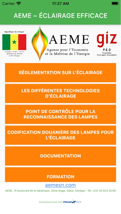 AemeGiz est une application ayant pour but d'accompagner et de sensibiliser les professionnels et populations aux bonnes pratiques sur les technologies d'éclairage au Sénégal.