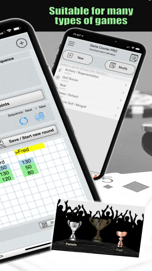 With Game Counter PRO you can easily record and save your game and sport results. Later, you can view the results and the leaderboard per year and game type via the chart function. This way, your successes and those of your co-players will not get lost and can always be retrieved!