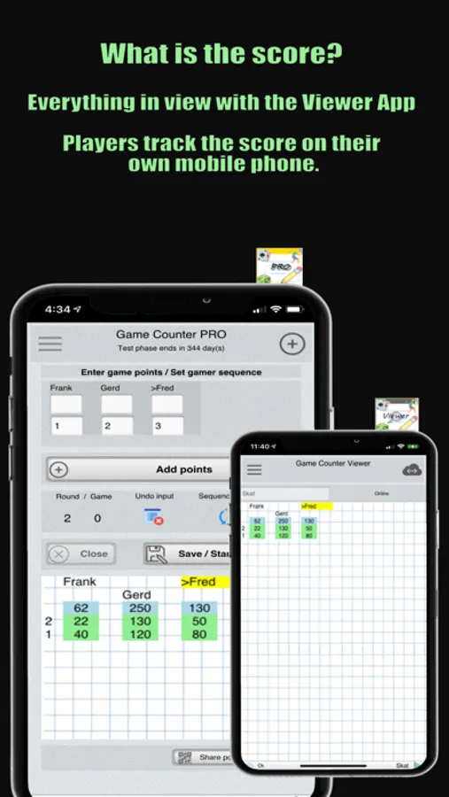 Ideal for card games: If you don't always want to ask what the score is, you can follow the score live on your phone with the Game Counter Viewer app. Great! All without personal login data. Have fun and start now.