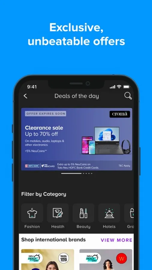 Earn up to 10% NeuCoins across groceries, travel, fashion & more on Tata Neu. Get up to 5% NeuCoins when you spend directly with our partner brands online, at stores or at hotels. Enjoy 5% NeuCoins on bill payments made on Tata Neu too. Get it all with ZERO joining fees for a limited time only!