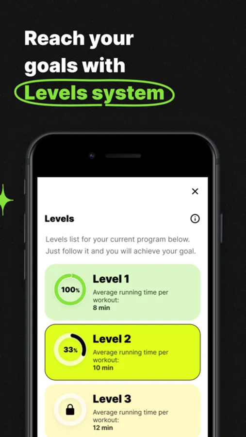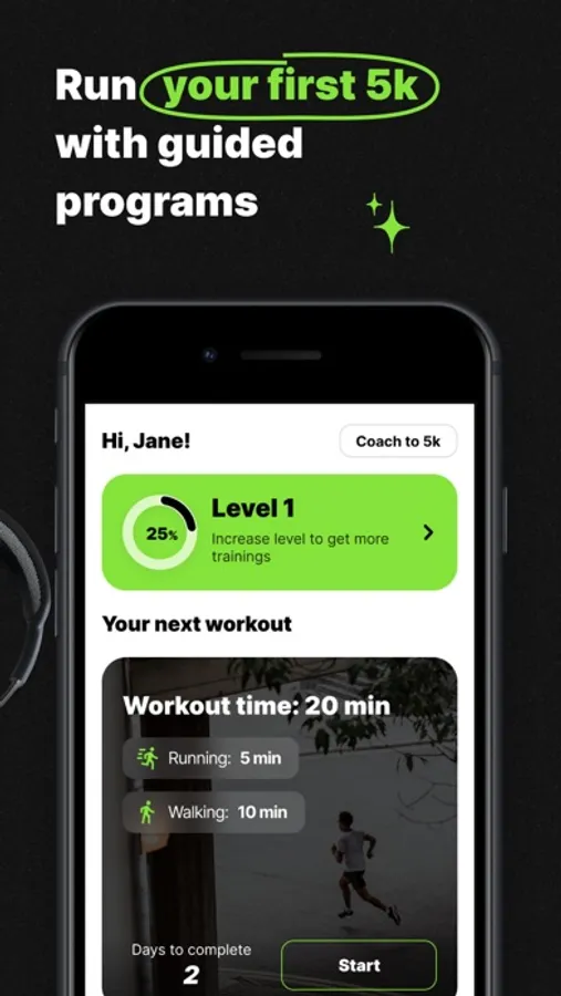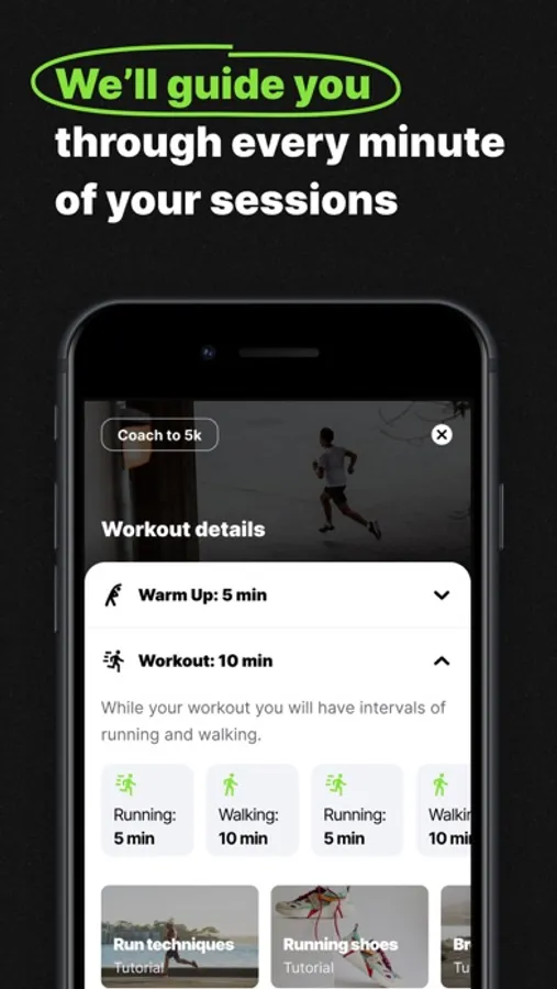 Workouts combine walking and running intervals and max out at 30 minutes three days a week. Use the app to track your progress, or activate an audio coach to guide you through your routine.