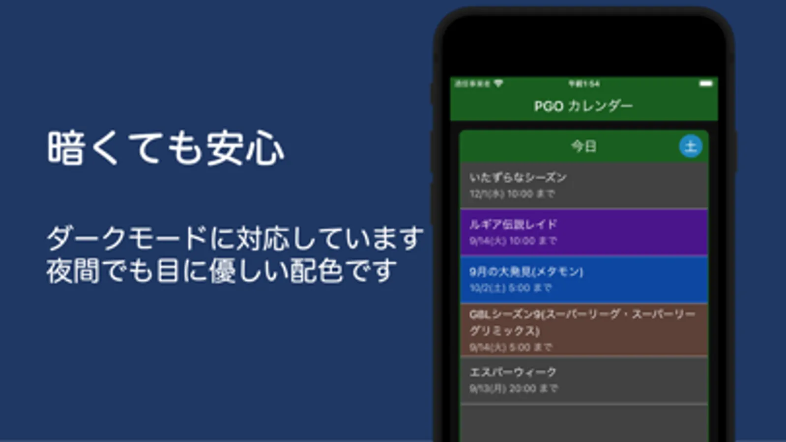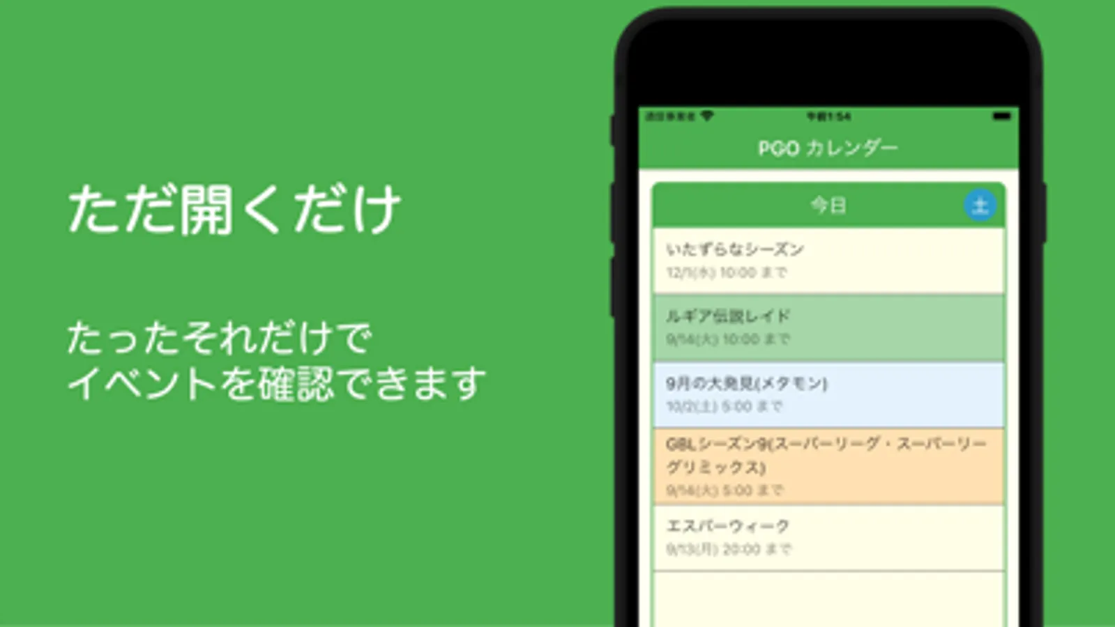 PGOカレンダーはポケモンGoで開催されているコミュニティ・デイやレイドアワー、伝説レイドバトル、○○ウィークなどのイベントを即座に確認できるアプリです。