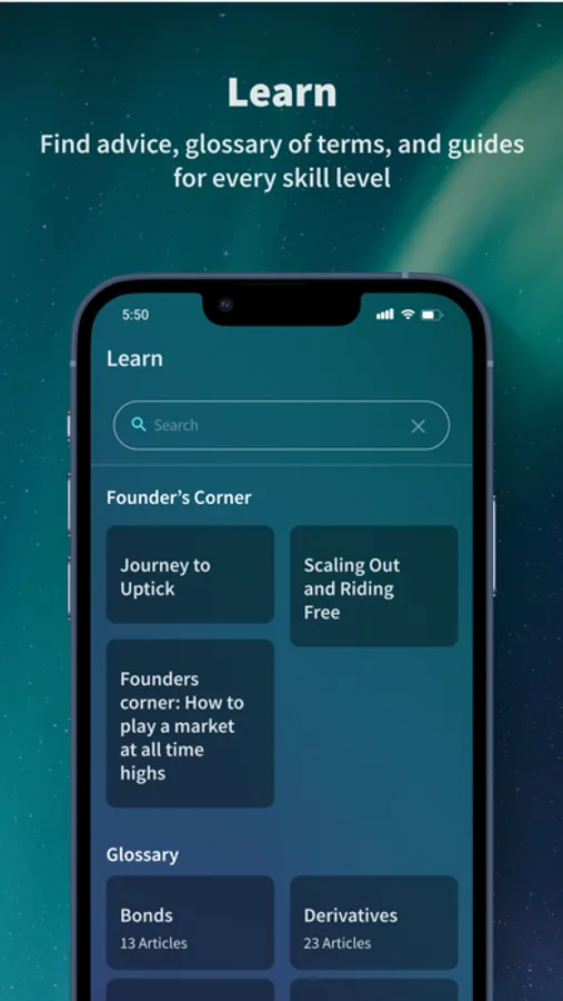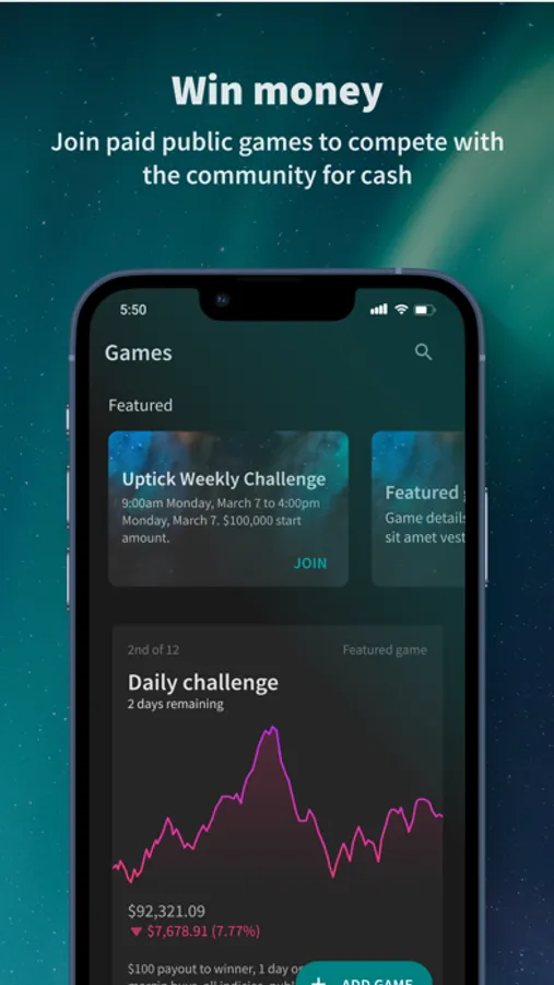 UpTick is a Fantasy Stock Trading app that is a blend of social competition with opportunities to learn about investing. Through our unique model you can win cash prizes based on your investing results, at no cost to you.