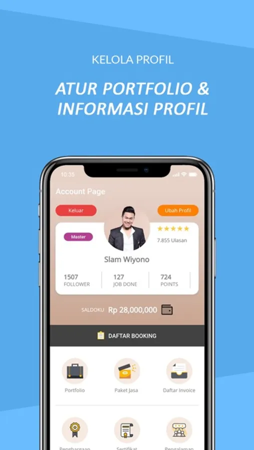 Kelola jasa/produk yang Anda tawarkan untuk bertransaksi dengan pelanggan. Anda juga bisa membuat dan mengisi profil yang lebih lengkap seperti portfolio, pengalaman bekerja dan lainnya untuk dikenal oleh pelanggan dan mendapatkan kepercayaan yang lebih baik.