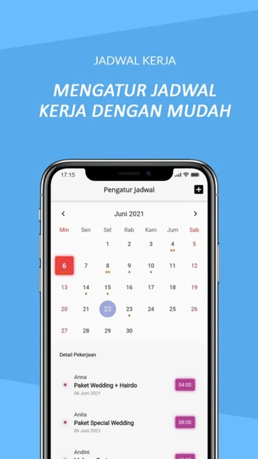 Selain bisa melakukan transaksi dengan pelanggan didalam aplikasi bahkan Anda juga dapat membuat, mengatur dan mengelola sendiri jadwal kerja dengan fitur seperti kalender dan pengingat jadwal untuk memudahkan pekerjaan.