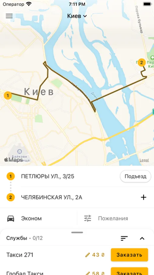 По умолчанию выбран тариф "Эконом", который подходит для тех, кто хочет съекономить на поездке и добраться до точки назначения мксимально дешево. Поскольку в этом тарифе самая низкая стоимость, иногда на поиск машны нужно больше времени (в часы пик и при большой згружености на дорогах). В случае долгого поиска машины можно сделать заказ сразу в нескольких службах либо самостоятельно добавить к стоимости несколько гривен или выбрать клас авто "Стандарт", стоимость котрого немного выше, но мотивирует водителей брать заказы быстрее.