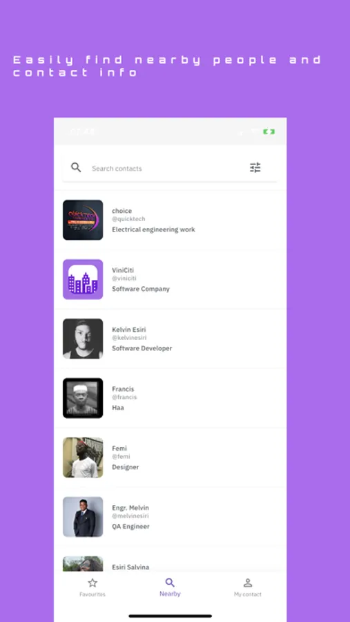 Welcome to ViniCiti. Easily find nearby people and contact info, share all your social links from one place and much more.