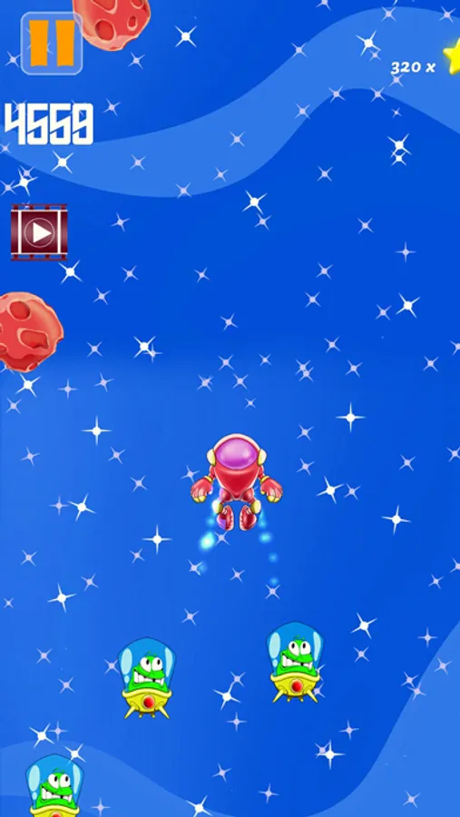 In the Astronaut Rush game, the Astronaut must get to the space station while dodging asteroids, aliens and various objects. Along the way, the astronaut collects stars and various bonuses. Sometimes he can meet a rocket that will help him get to the station faster while destroying asteroids on his way. During the journey, the astronaut collects stars, which can later be exchanged for new spacesuits.
