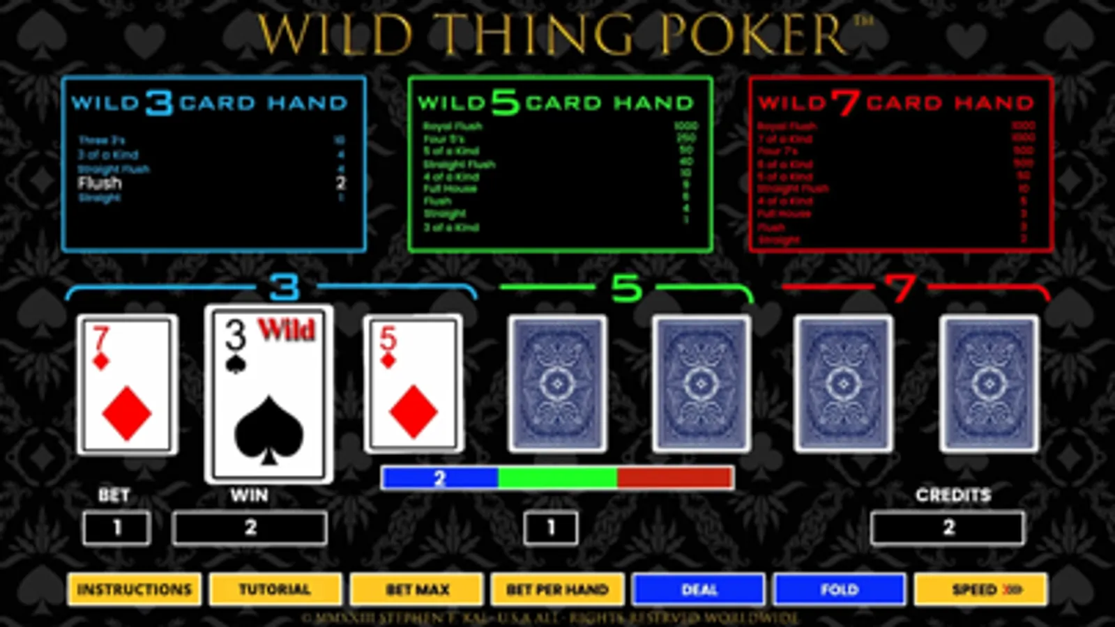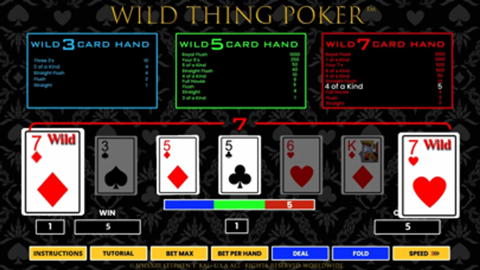 Wild Thing Poker comes to you from Kal Gaming, whose founder is a veteran designer/developer of revolutionary casino and mobile games.
