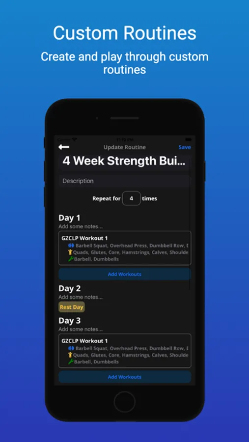 Dynamic sets allow you to change your workout based on your previous performance. You can choose from dynamic commands such as increasing/decreasing reps and increasing/decreasing weight. With routines and the routine tracker, you can group together workouts and rest days to create personalized plans and never worry about what day in the program comes next. This means you can create a workout plan that is tailored to your needs and can adjust it as you progress.