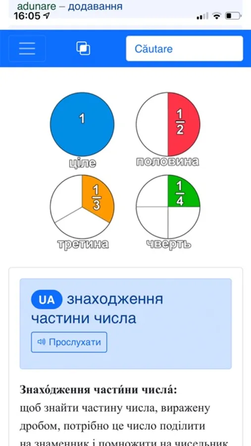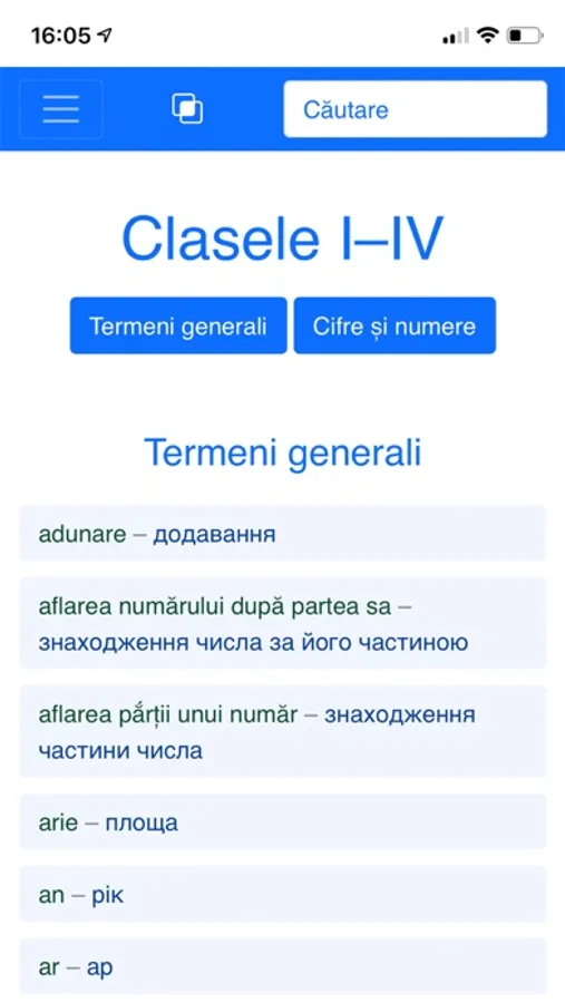 În dicționar puteți căuta termenii atât în limba română, cât și în limba ucraineană. Poate fi folosit individual în timpul efectuării temelor pentru acasă, dar și ca resursă suplimentară la lecțiile de matematică.