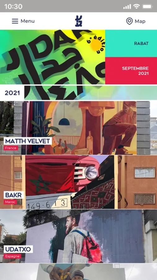 Depuis son lancement en 2015, le festival JIDAR a transformé Rabat en l'un des centres les plus intéressants de l'art urbain international. Cette transformation est un Work In Progress constant et la 6ème édition prévue du 16 au 26 septembre 2021 continuera à enrichir le patrimoine culturel de la ville avec une nouvelle série d'œuvres d'art créées par des artistes de renommée mondiale.