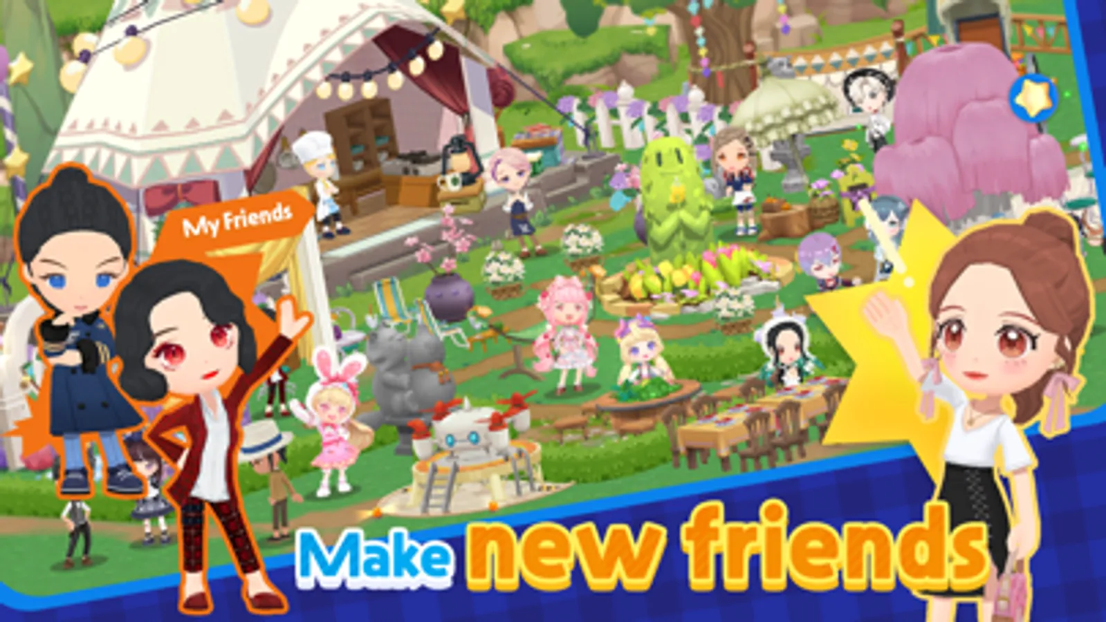 In this social virtual world, you can style your avatar fashion or design your own restaurant, invite friends to your restaurant, Open private chat room or roleplay. Head out to square and meet new random friends from all over the world and enjoy special events and community game such as Avatar fashion contest, bingo, fishing, etc.
