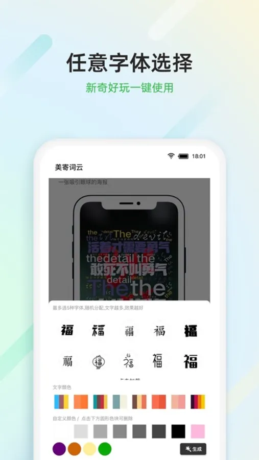 美寄词云是一款中文wordart cloud,可快速生成中文文字图片。