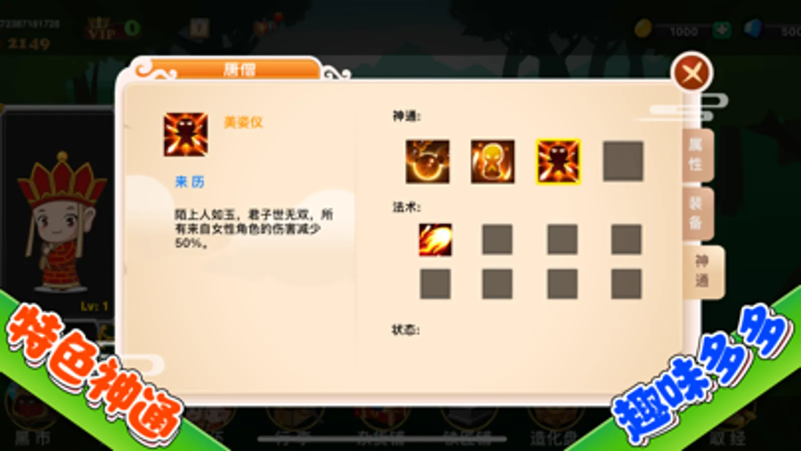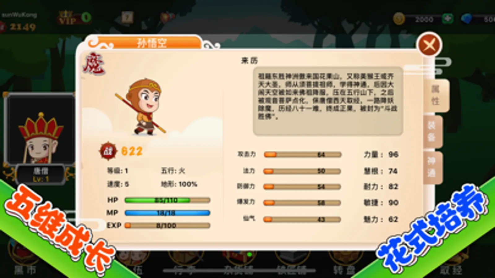 4、独特的人物培养机制,人物的力量、慧根、耐力、敏捷、魅力,如何取舍,妖魔鬼怪如何培养才能最强?都等待着您的探索。