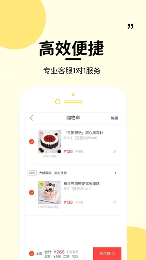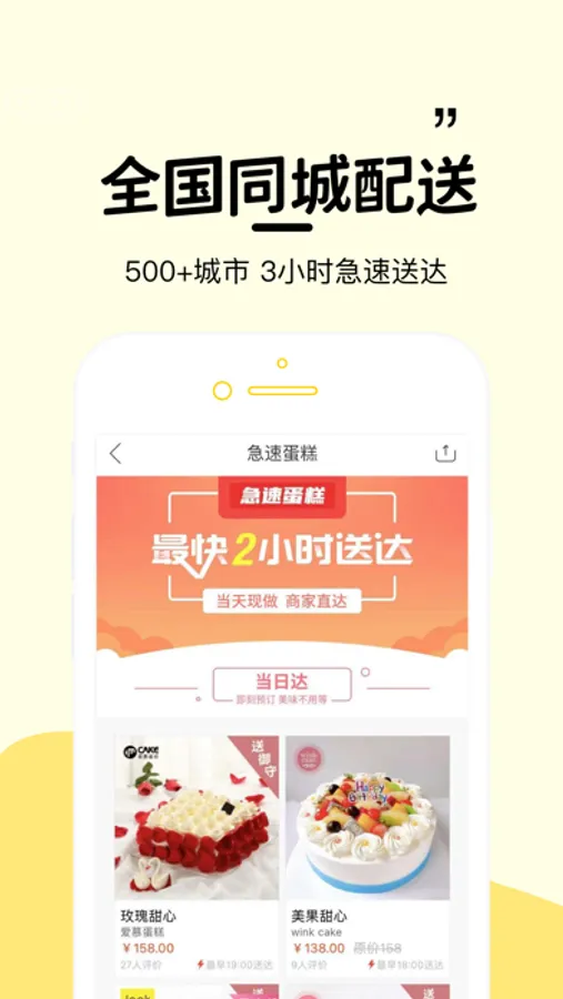 真正实现APP随时随地订蛋糕,贴身客服助您挑选,支持全国500+城市异地订购,更有专人配送1-3小时送达服务。