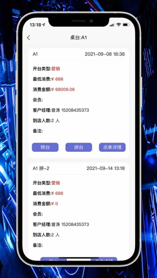 督导手机实时查看桌台状况,存取酒、销售订单,做到督导自查,避免飞单超送和数据篡改等情况,避免你的经济损失。