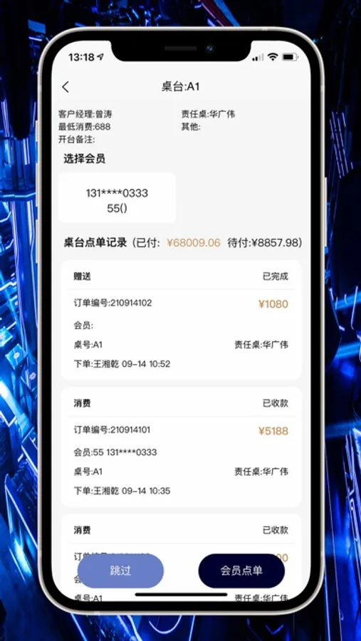 4.数据同步:电脑端和手机端可以实现数据共享,数据实时云同步,做到一部手机管理管理一个酒吧