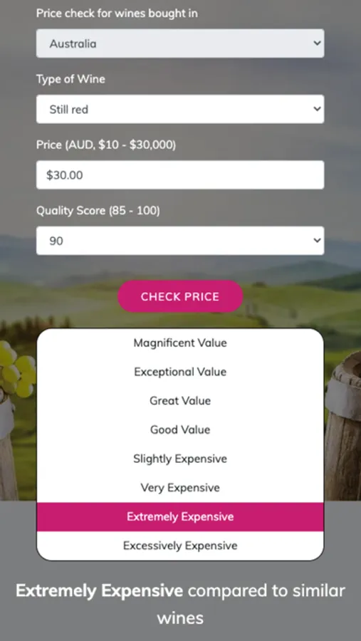 Check to see if the price of your wine is fair compared to other wines of the same type and quality. Regularly updated with thousands of similar wines.