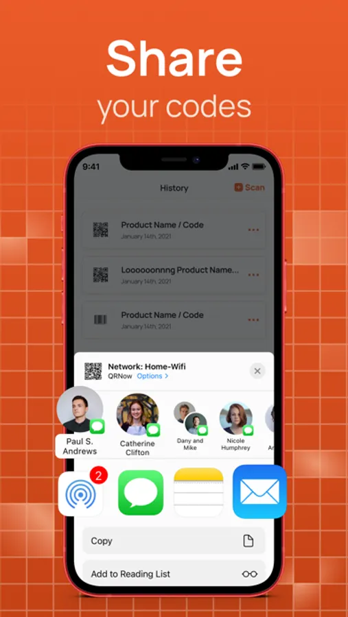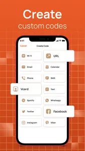 Create new personalized QRs for Wi-Fi, Email, URL, Phone, Messages, VCard, meCard, Text, and more.