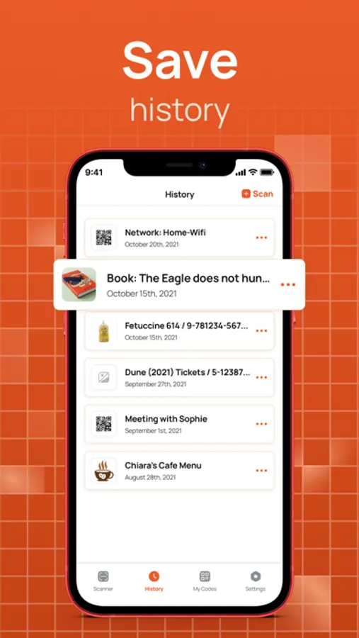 Scan QR codes and barcodes using your camera, media library, or by entering code serial numbers.