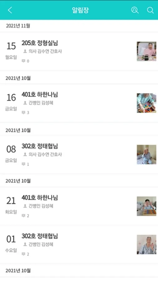 병원 및 요양원, 주간보호센터 등 에서 스마트폰을 이용한 우리어르신 알림장