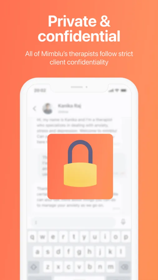 At Mimblu, we prioritize the security and confidentiality of your mental health journey. Rest assured that all your conversations with our therapists are kept strictly confidential. Our secure platform ensures the protection of your personal information, allowing you to express yourself openly and honestly in a safe and trusted environment. Think of it like a locked journal.