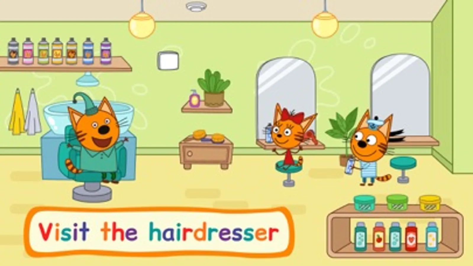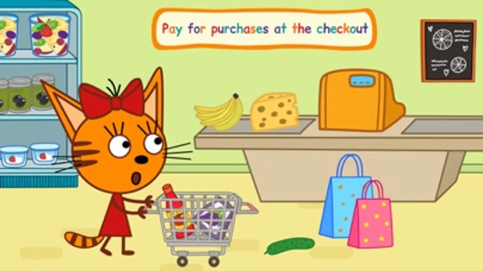 A new adventure is waiting for funny kittens! Use your imagination with the characters from your favorite cartoon Kid-E-Cats. Make shopping in the supermarket, choose clothes for all family members, visit hair salon and photo studio, and then have a snack at the cafe. A lot of surprises and interesting things are waiting for you at every supermarket floor! Kittens are waiting for you!