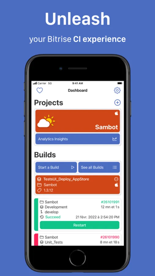 • Have Quick Access to your most important Projects and follow their Builds and Health at any time