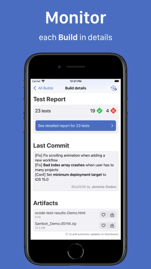 • Be notified as soon as a Build finished (success or error) to act in the nick of time