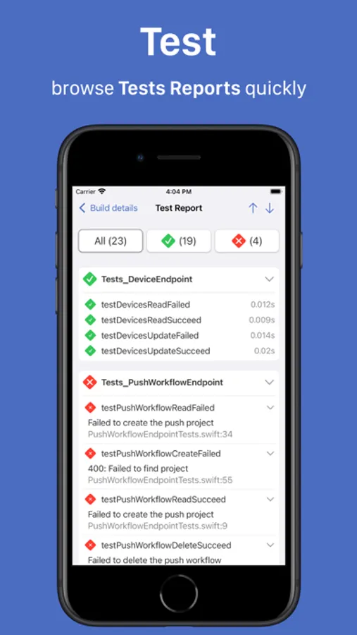 • Get a comprehensive & understandable Test Report summary for your builds, parsed from CI logs