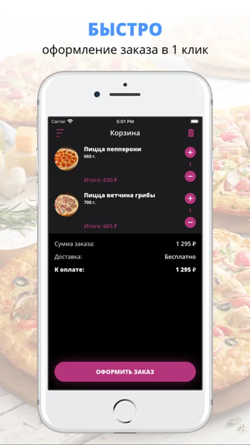 удобная корзина и быстрое оформление заказа,