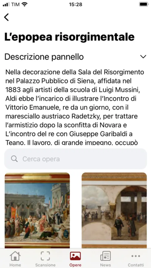 • Cerca opera: gli utenti potranno avere informazioni specifiche su una singola opera;