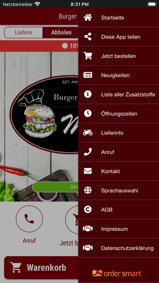 TÄGLICH frische selbstgemachte BEEF Patties, frisches Gemüse, Einzigartige Buns, Dafür stehen wir - Burger Mariosa