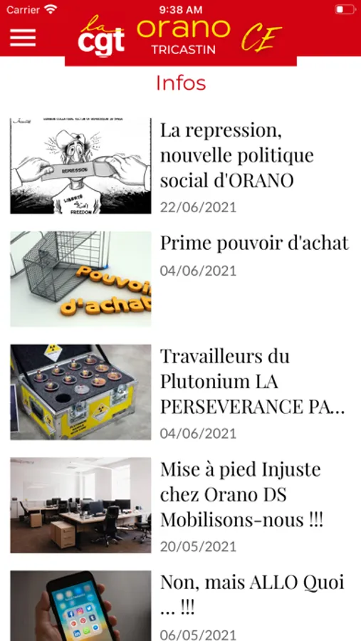Suivez l'actualité globale de l'entreprise, les réformes et tous les communiqués de la filiale Orano Tricastin basé dans le Gard Rhodanien. L'application CGT Orano Tricastin permet aux salariés de suivre l'actualités et aux syndiqués d'avoir accès à des articles supplémentaires dédié à l'actualité.