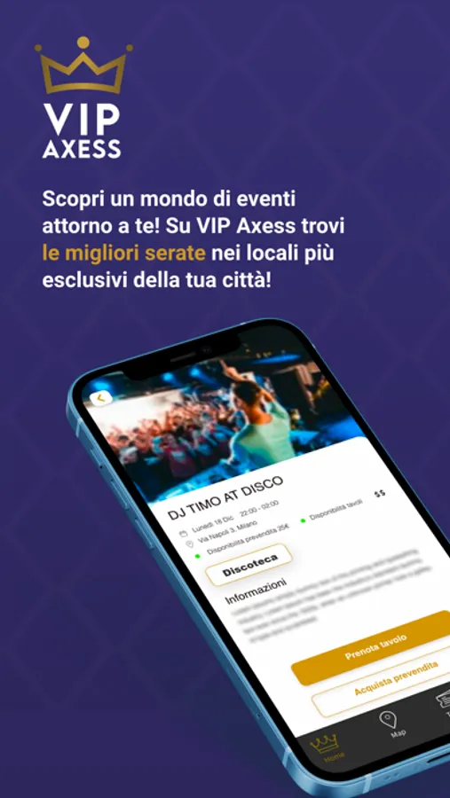I Vipper si sa, amano l’esclusività e godersi la vita. Grazie a VIP Axess, potrai dare sfogo a tutte le tue esigenze per goderti al massimo la tua prossima serata in discoteca! Comodamente dall’app infatti, potrai prenotare un tavolo o un privé nelle migliori discoteche della tua città o nella zona che hai selezionato, direttamente dal tuo smartphone.