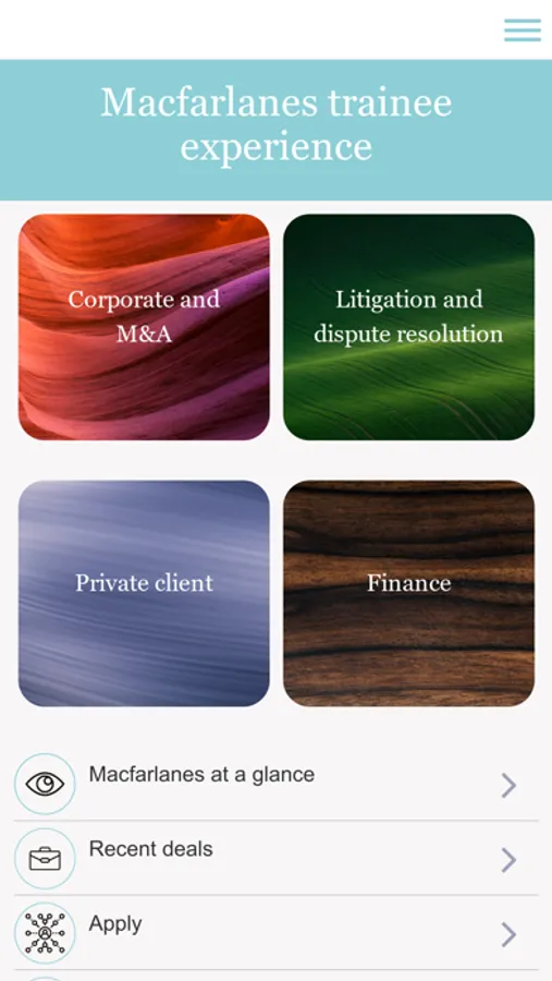 Upon completion of the Macfarlanes trainee experience you can sign up to attend one of our virtual webinars where our solicitors will run through their task from the app in more detail. These are an excellent opportunity to consolidate everything you have learnt and ask any follow up questions.