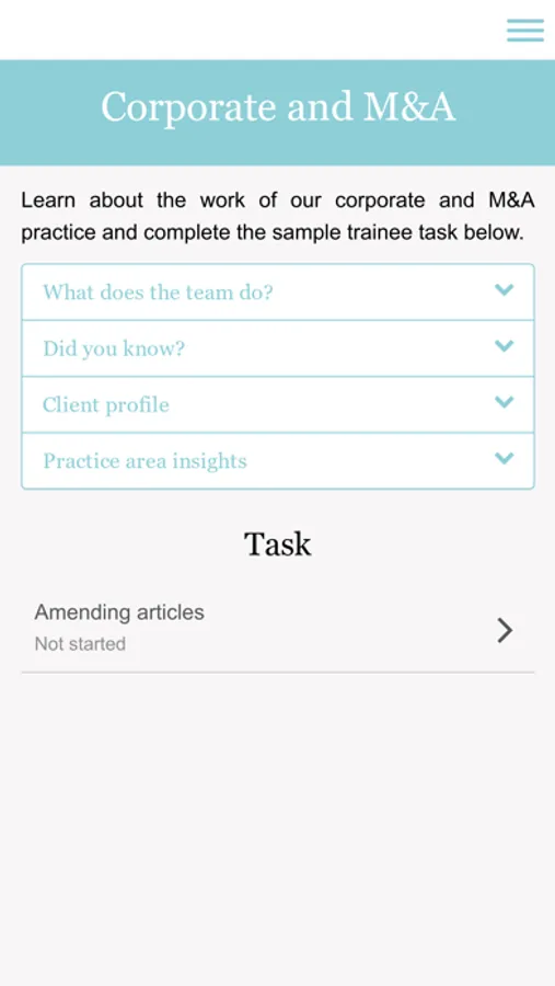 The programme has been developed in-house, and all tasks have been modelled on real work and created by our associates and trainee solicitors. The app will allow you to experience work from our corporate and M&A, finance, litigation and private client teams.