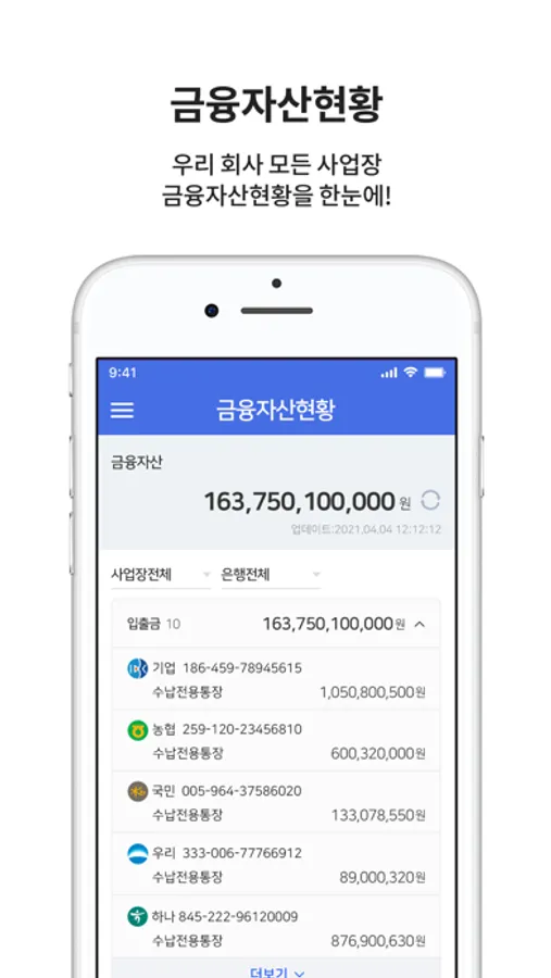 모바일 자금관리ㆍ결재함앱 ■금융자산현황 ■사업장 전계좌조회 ■지출결재 대상 조회 및 확인