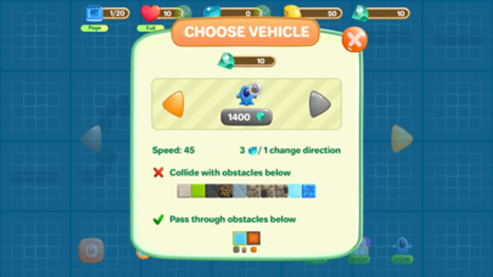 - Player can choose Car, Heavy Car or Plane for playing game.