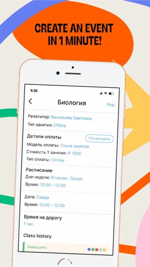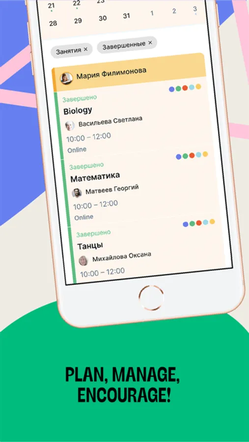 The Offschool calendar includes both extracurricular activities and any other events: a trip to the dentist, a birthday or a family dinner - all in one place.