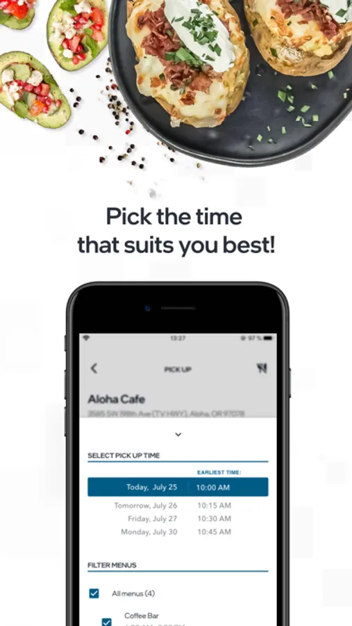 Choose a pickup time that works best for your schedule. No more waiting around for your order to be ready. You decide when you want to pick up and we make sure it’s ready when you arrive. Simple and easy.