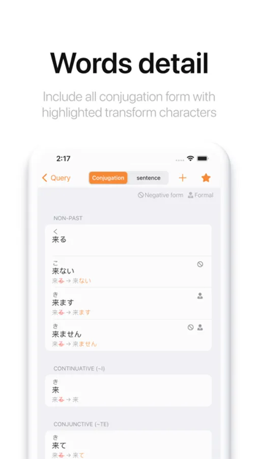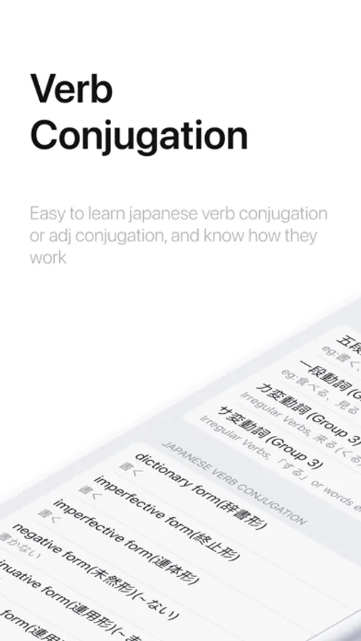 - The most complete and accurate Japanese conjugation learning app with over 13,000 conjugation vocabularies.