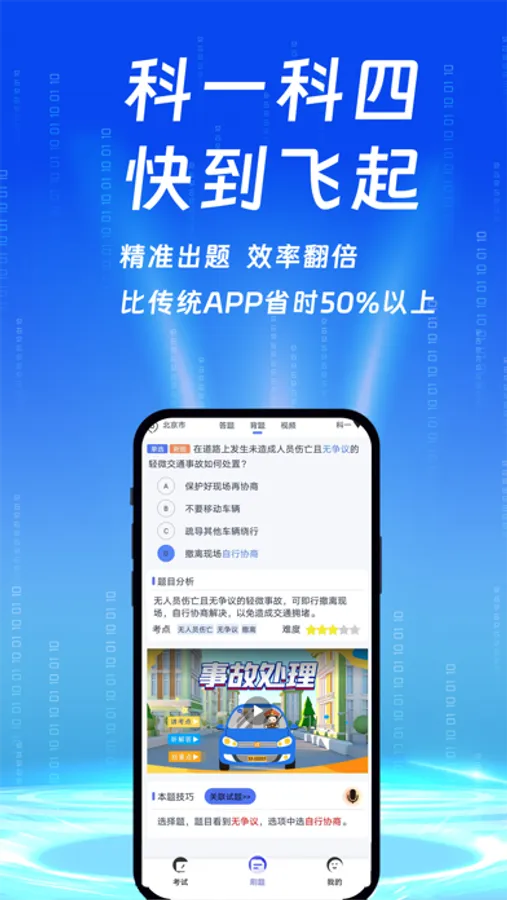 朕学车是一款纯驾考理论刷题APP,实时同步更新官方题库,行业内首个采用AI智能算法出题,提炼知识点、智能过滤简单题、匹配每个人答题习惯,只刷不会做的题,强化记忆、效率翻倍,比传统答题APP节省50%以上时间。 创新性的将题库内容解析成简单易懂的“动画+视频”方式呈现,轻轻松松、刷刷视频学习驾考题库知识,刷题如刷视频一样简单! 专家课程,保姆式教学;难题攻克,深度专项练习;考前秘卷,提前解密熟悉;知识考点、汇总提炼;视频讲解、深度记忆;最快考前冲刺仅需2小时! 纯刷题、无广告、无骚扰、考驾照如此简单!