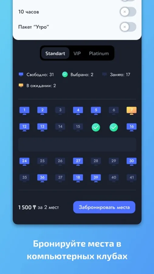- Персональное бронирование компьютеров по выбору: даты, времени и тарифов в один клик