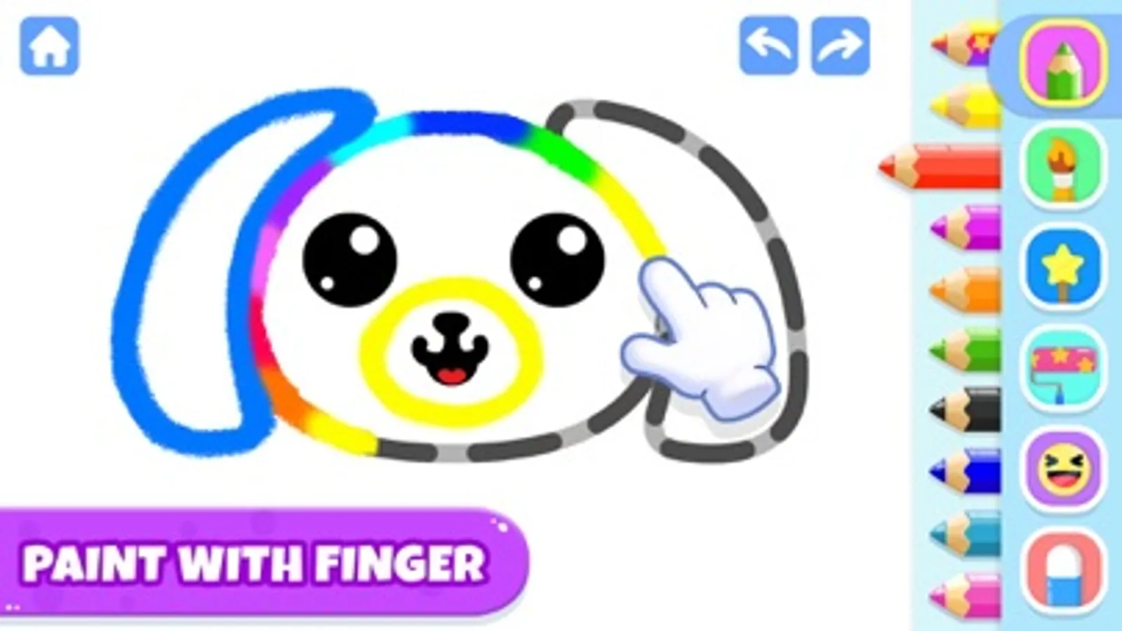 Feel free to use your favorite colors so that you can make colorful cartoons in this learning and doodling apps for kids. Choose your most favorite pets, draw them the way you want and fill with the most beautiful colors in this toddler coloring games for boys.