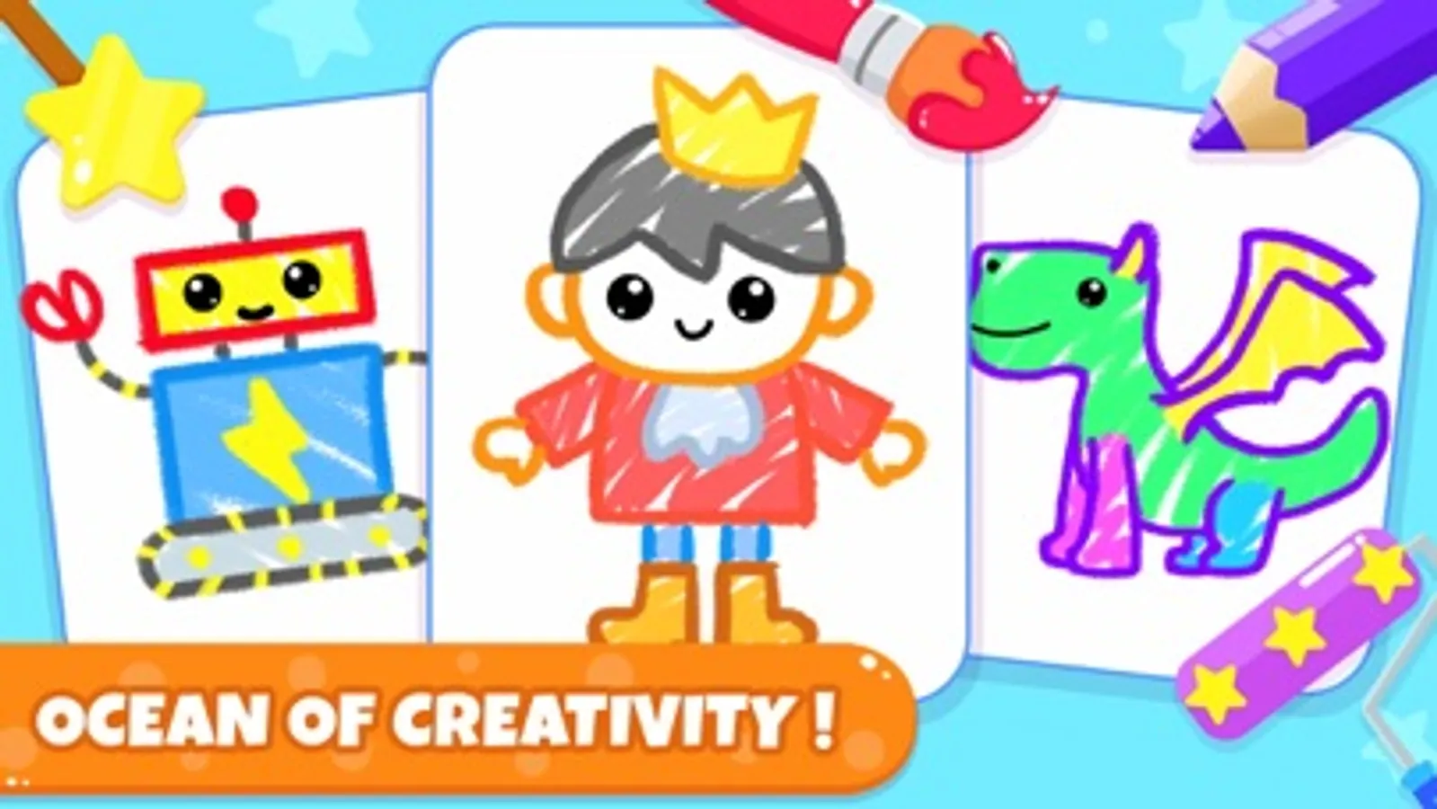 Drawing apps for kids is a very useful activity in free coloring games for kids. Drawing games for kids that is developed for all ages to share the joy of painting and drawing whether you’re an artist or doodle master, just enjoy these kids coloring games.