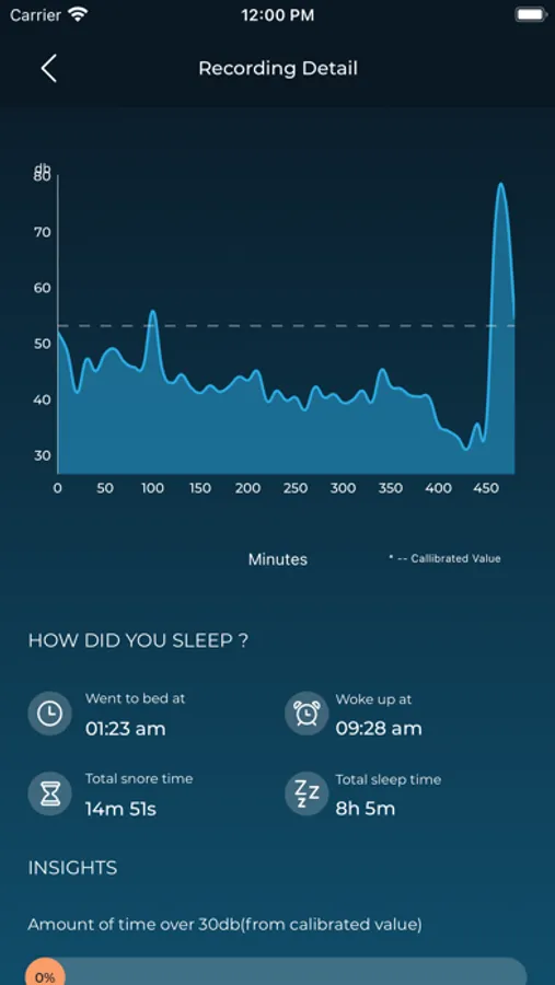 You can also see your average snoring levels over several days or weeks so you can get a better idea of how loud you snore over a long period of time. This is therefore superior to a sleep study in terms of snoring data as they only record noise data from one or two nights at most. People snore at variable levels throughout the week, and getting an average level over a long period of time is very important to understand snoring trends. It would also help you understand if losing weight, using a device or surgery helped your snoring levels.