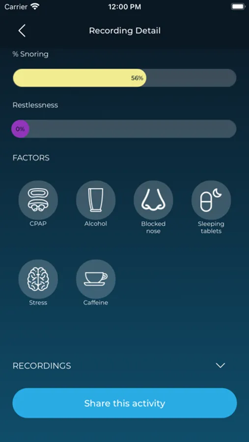 Snore Doctor will also record your snoring so you can hear it back and show it to your friends, family, or doctor later on. You also have the option of sharing your data via social media / email if you wish.