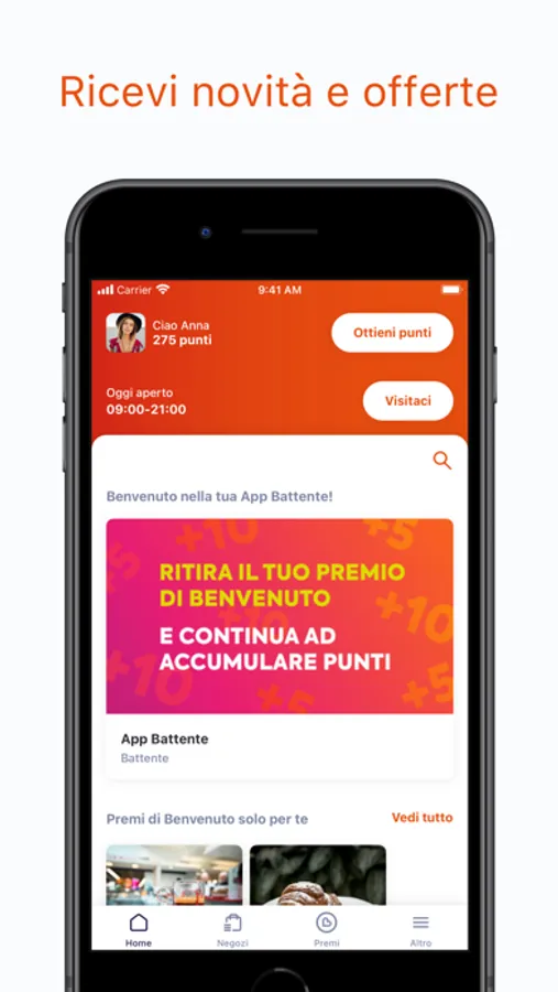 Scaricando l’app riceverai messaggi e notifiche relativamente ai servizi forniti dall'app, da Battente e dai negozi presenti nel centro commerciale Al Battente.